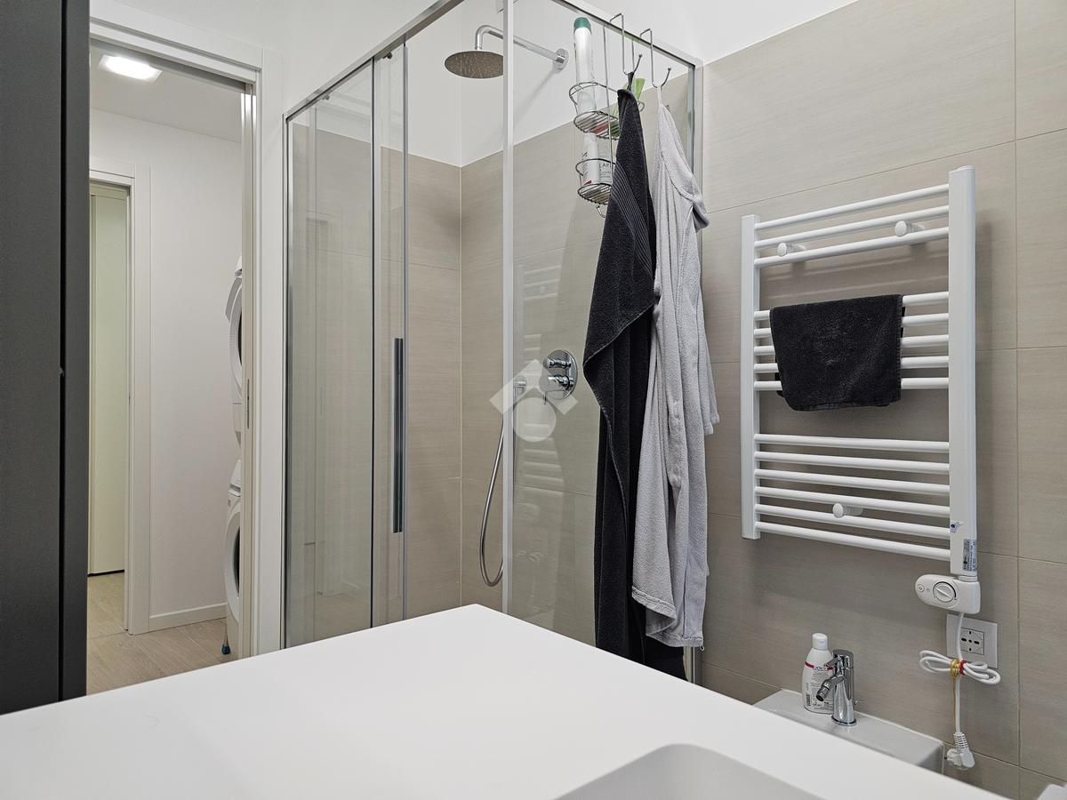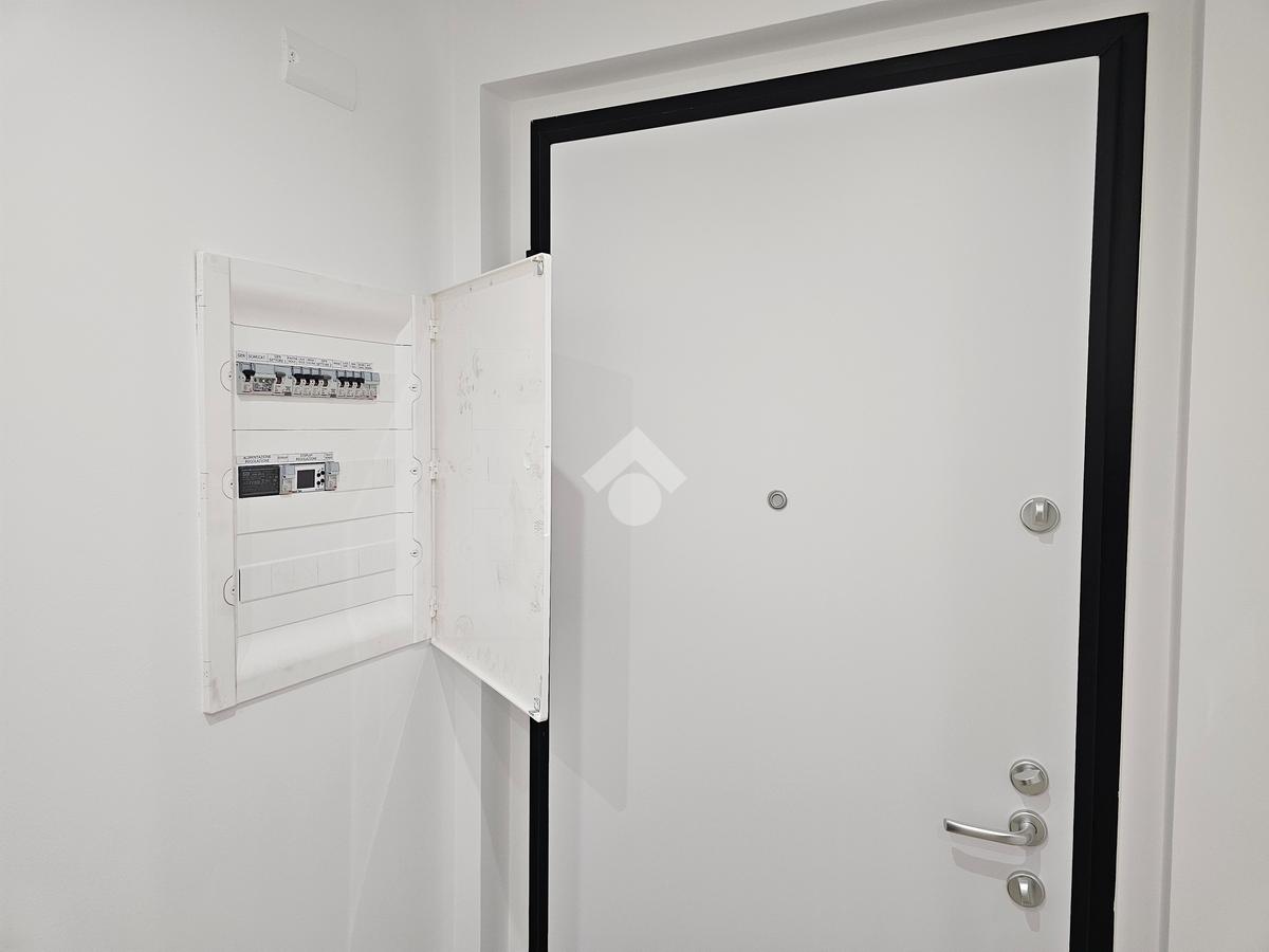 Gli spazi interni sono ben distribuiti e comprendono due locali, ideali per chi cerca un ambiente accogliente e funzionale. La zona giorno è luminosa e si integra perfettamente con la cucina a vista, creando un ambiente conviviale. La camera da letto offre comfort e tranquillità, mentre il bagno è dotato di finiture moderne e finestra, terrazzino e cantina di pertinenza.