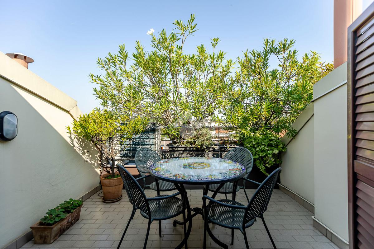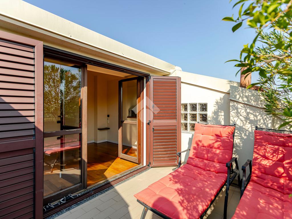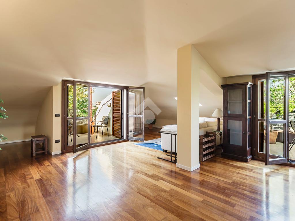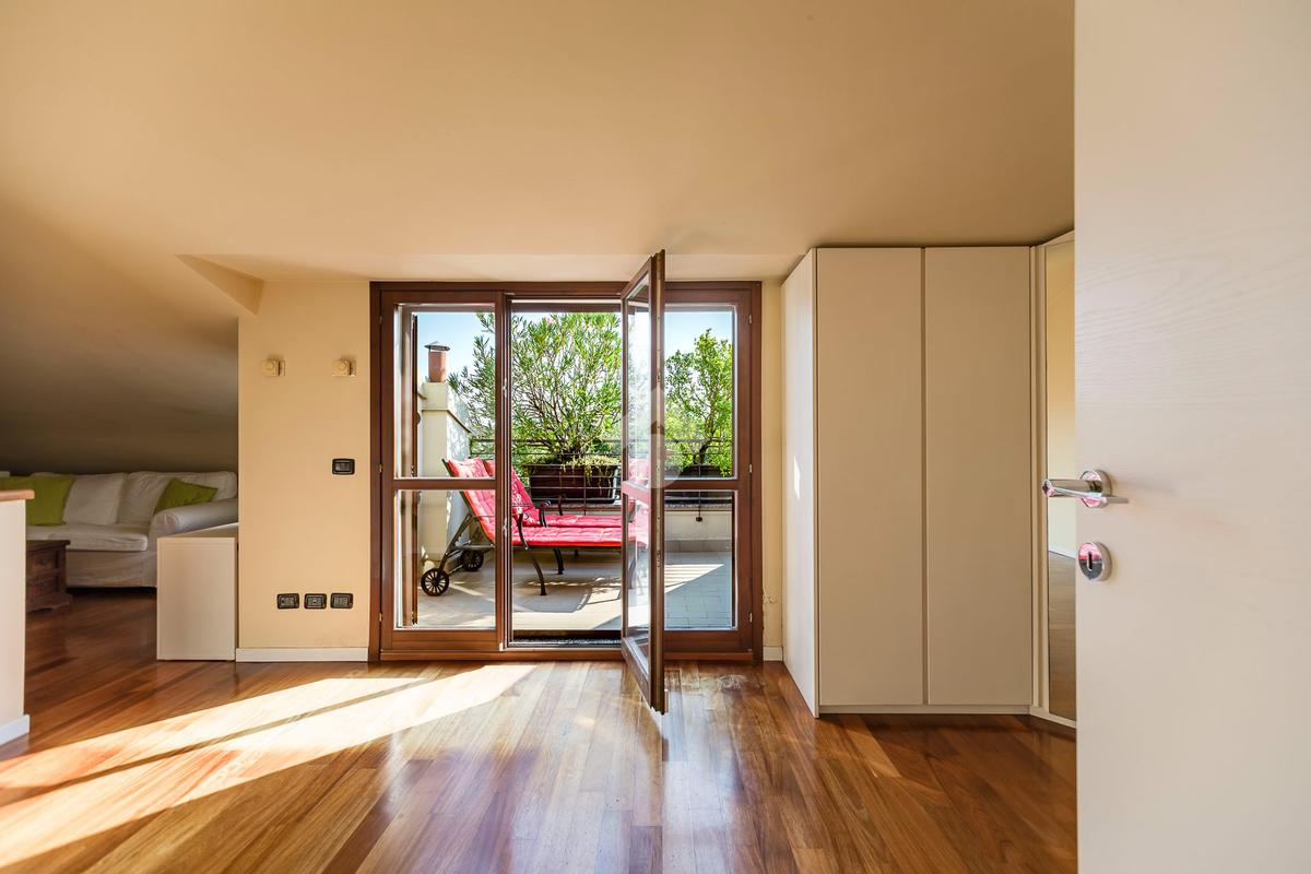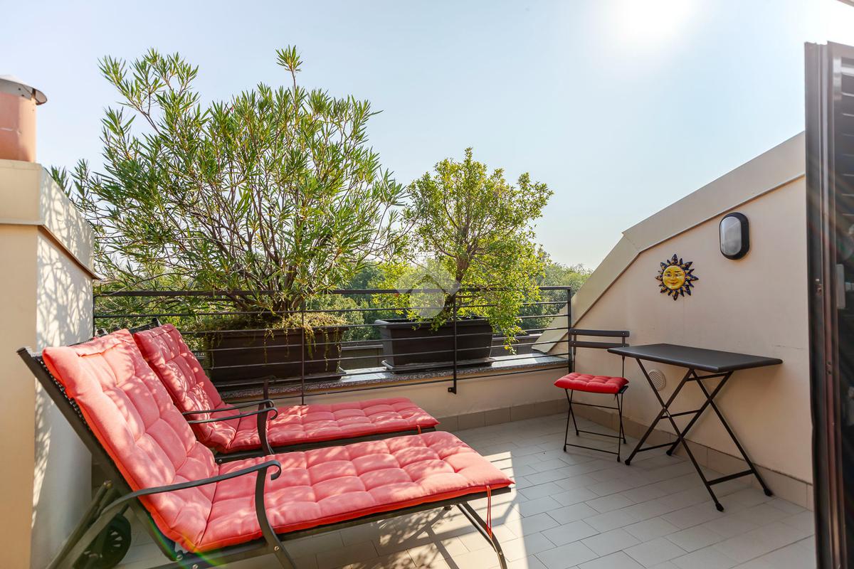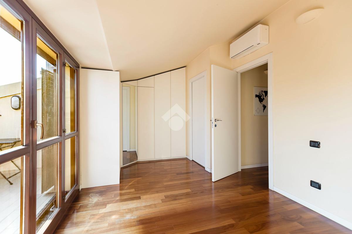 L'appartamento ha un ingresso su soggiorno con cucina a vista, disimpegno che separa la zona notte, dove troviamo un primo bagno di servizio finestrato. camera da letto matrimoniale con cabina armadio, una seconda camera da letto con un bagno privato ed un angolo studio. La soluzione ha quattro terrazzi e gode di una tripla esposizione.