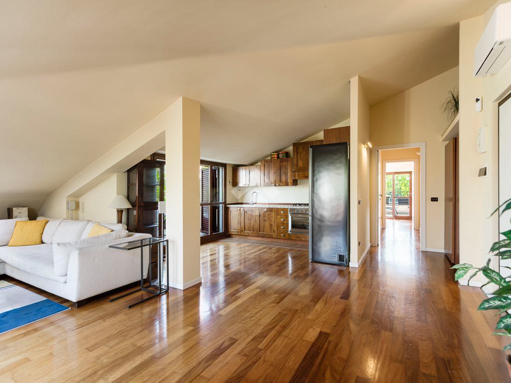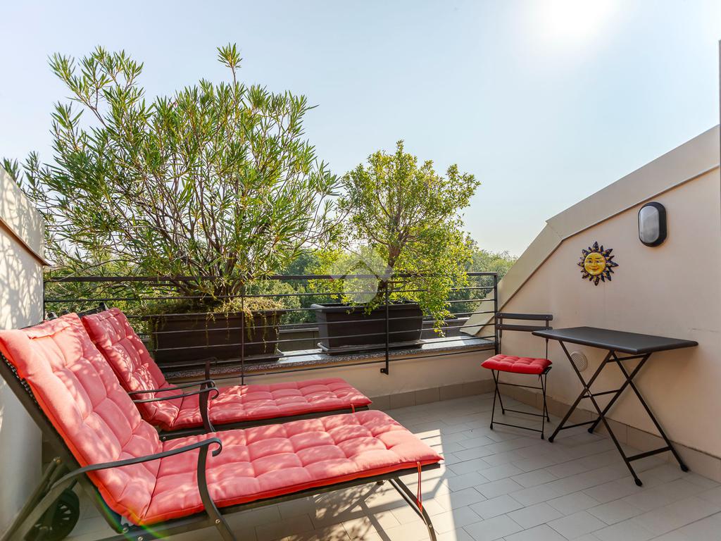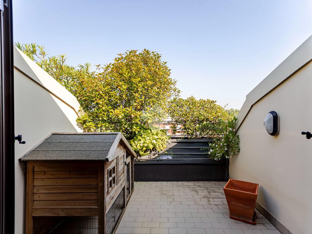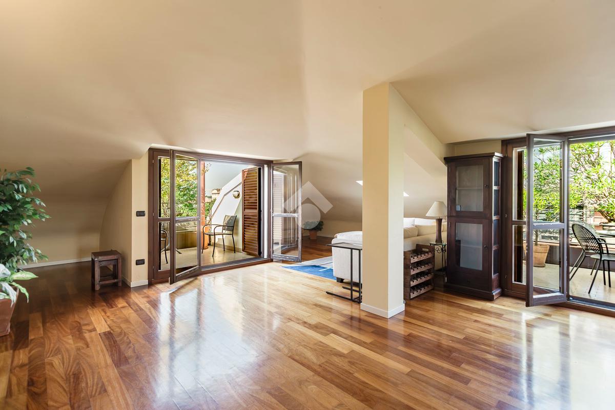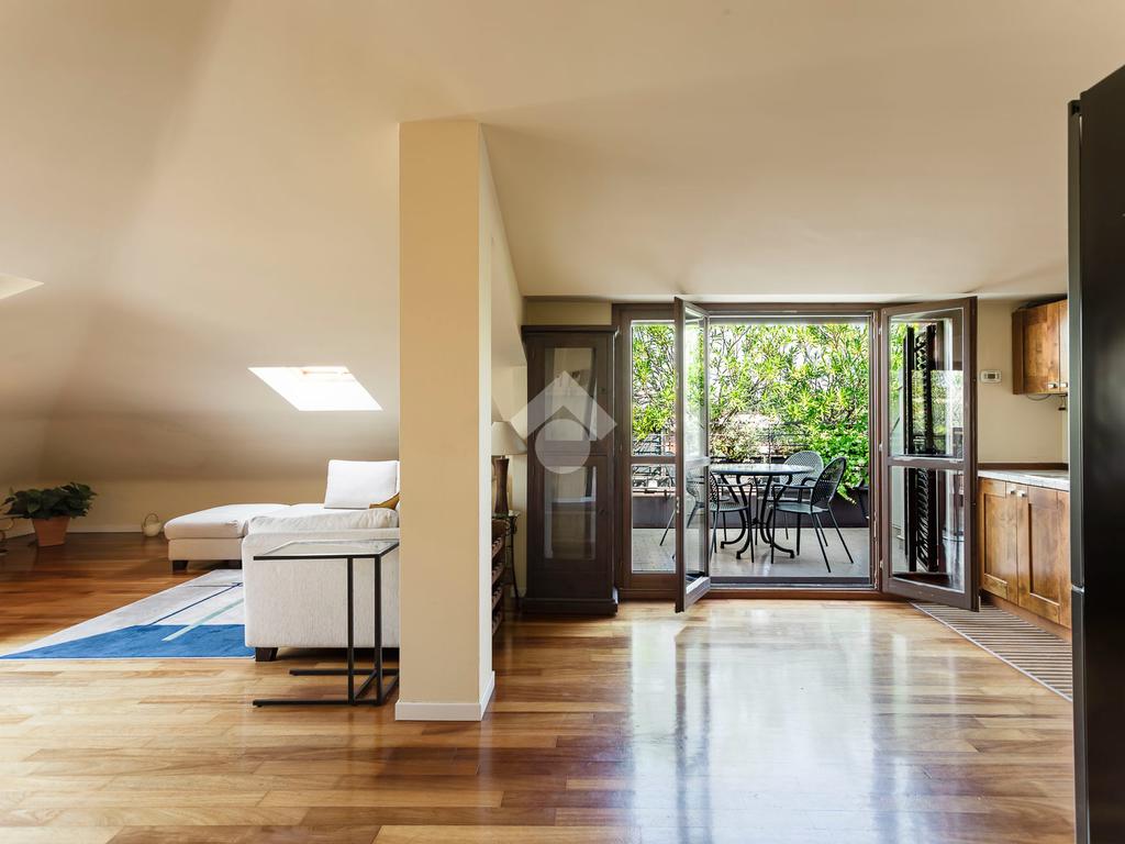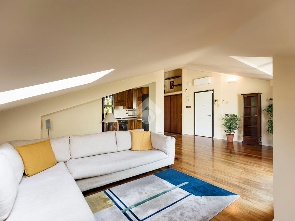 L'appartamento ha un ingresso su soggiorno con cucina a vista, disimpegno che separa la zona notte, dove troviamo un primo bagno di servizio finestrato. camera da letto matrimoniale con cabina armadio, una seconda camera da letto con un bagno privato ed un angolo studio. La soluzione ha quattro terrazzi e gode di una tripla esposizione.