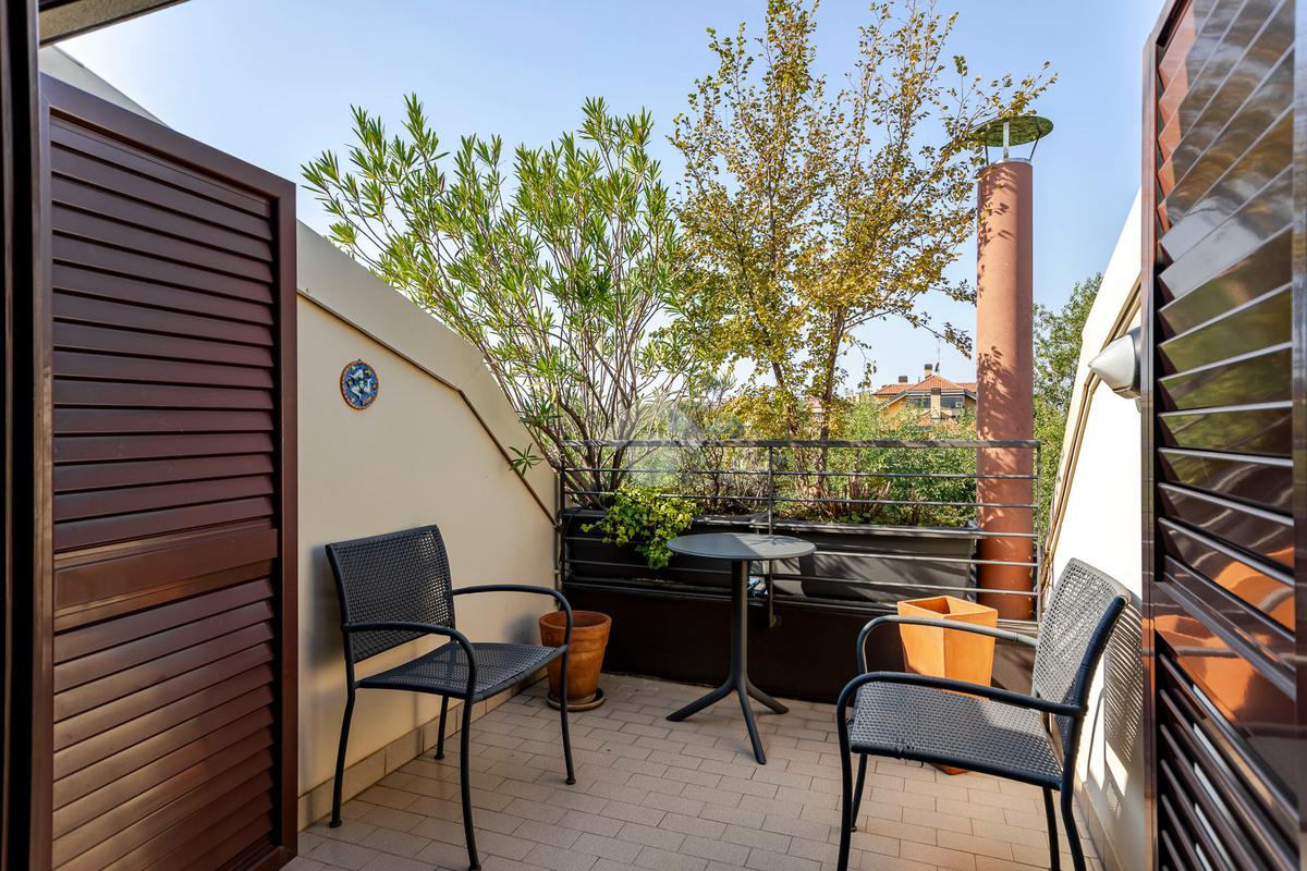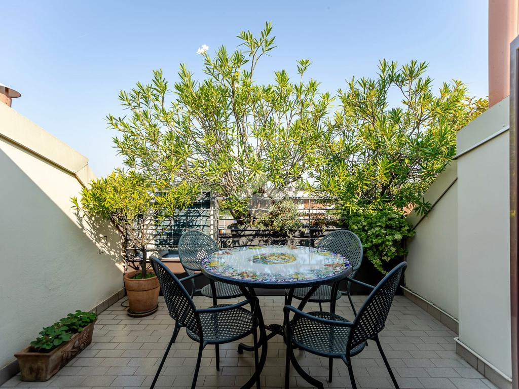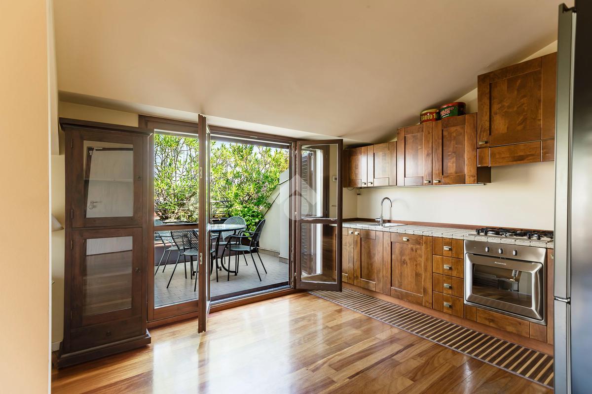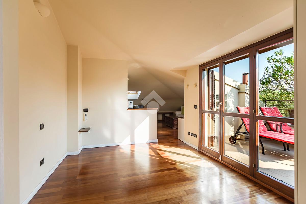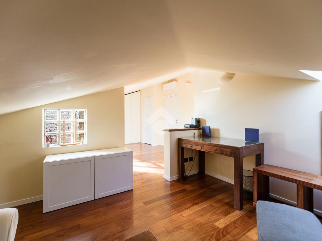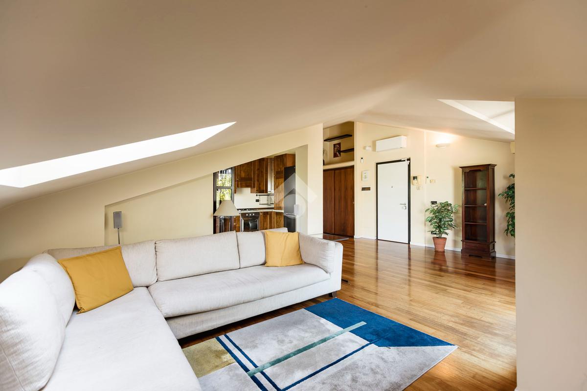 L'appartamento ha un ingresso su soggiorno con cucina a vista, disimpegno che separa la zona notte, dove troviamo un primo bagno di servizio finestrato. camera da letto matrimoniale con cabina armadio, una seconda camera da letto con un bagno privato ed un angolo studio. La soluzione ha quattro terrazzi e gode di una tripla esposizione.