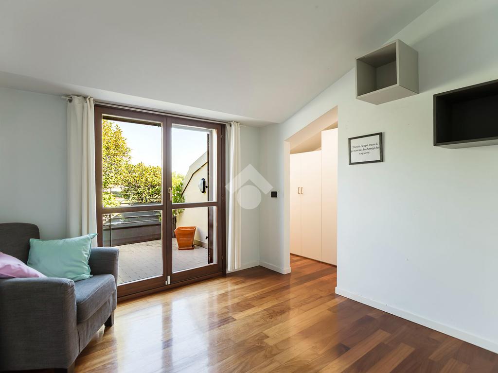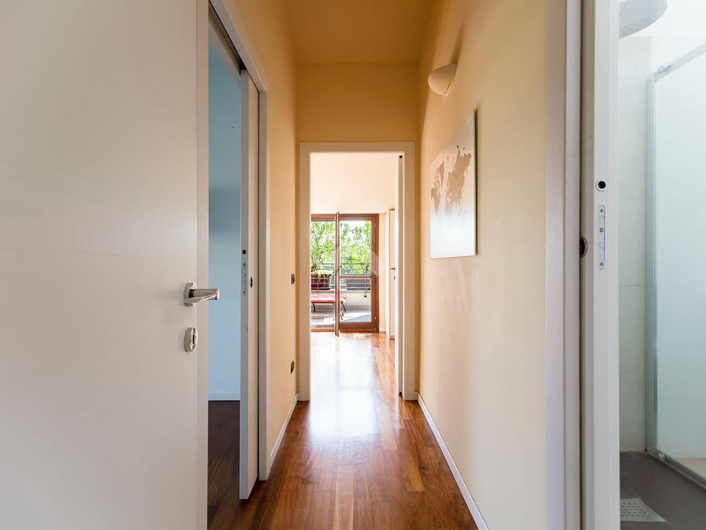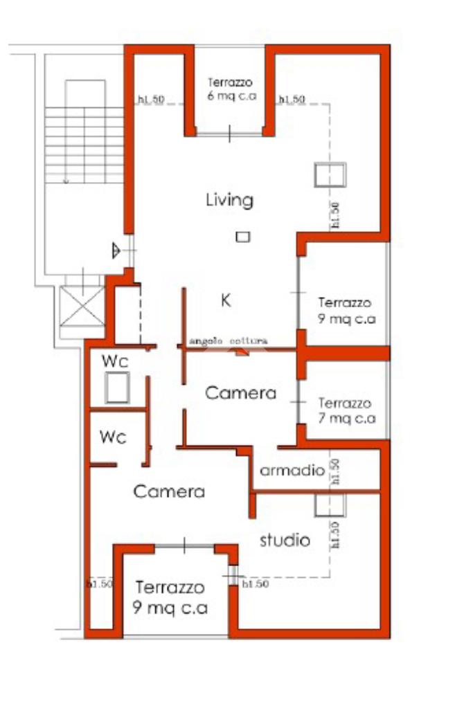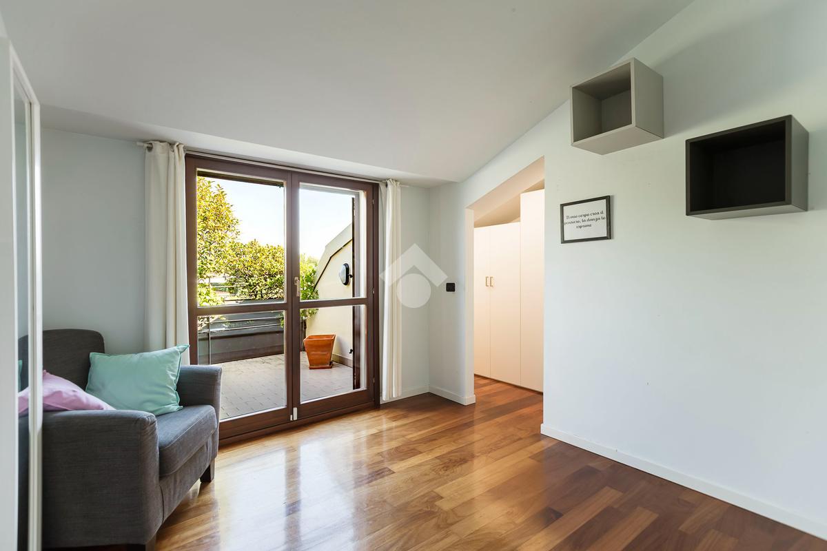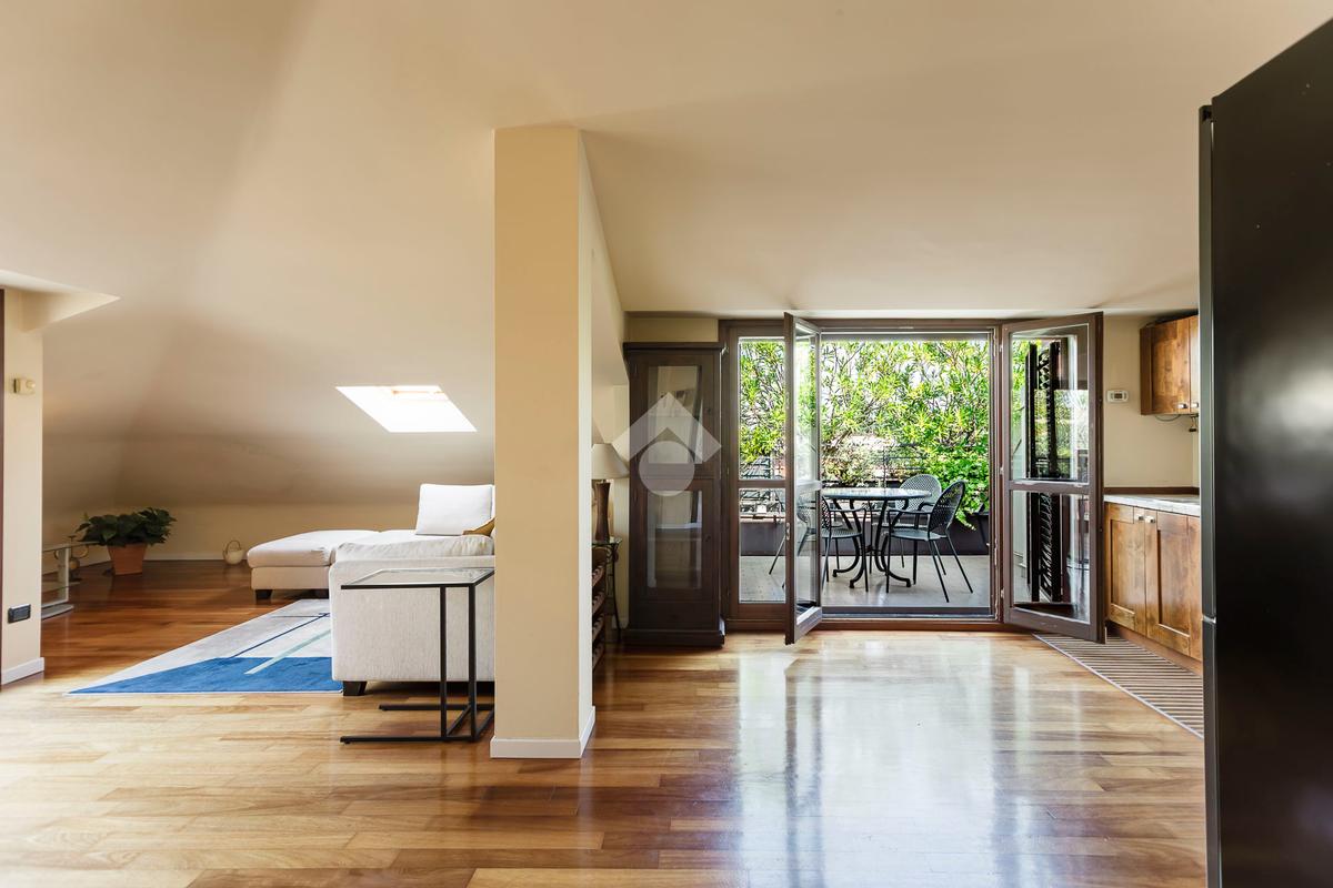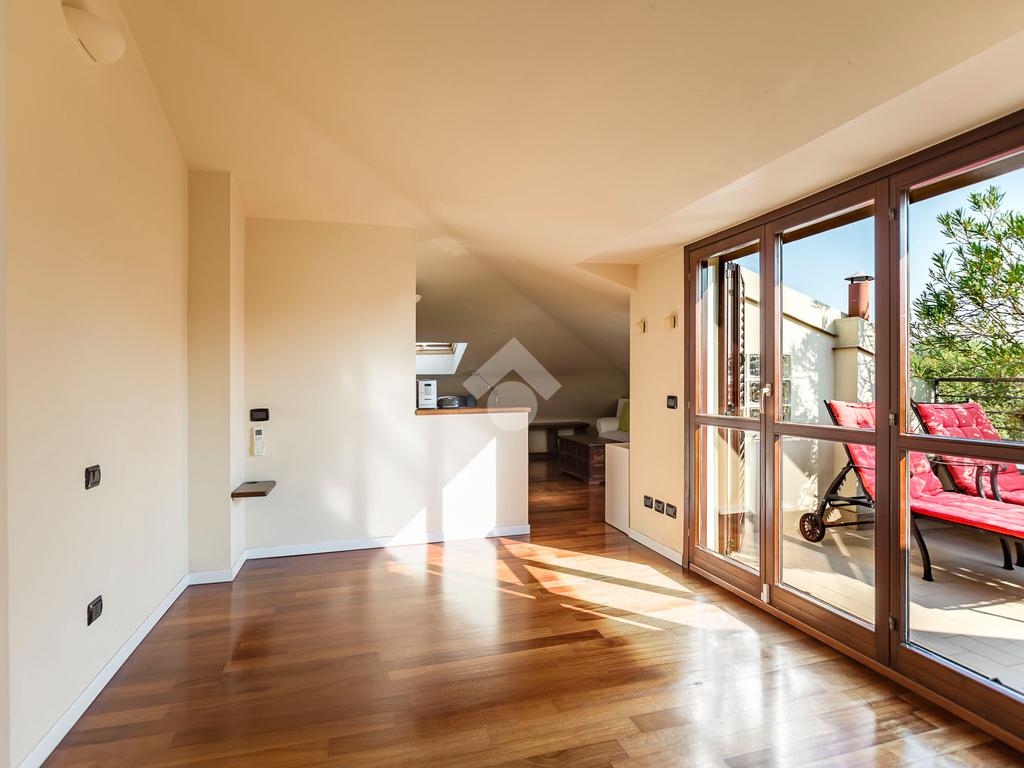L'appartamento ha un ingresso su soggiorno con cucina a vista, disimpegno che separa la zona notte, dove troviamo un primo bagno di servizio finestrato. camera da letto matrimoniale con cabina armadio, una seconda camera da letto con un bagno privato ed un angolo studio. La soluzione ha quattro terrazzi e gode di una tripla esposizione.