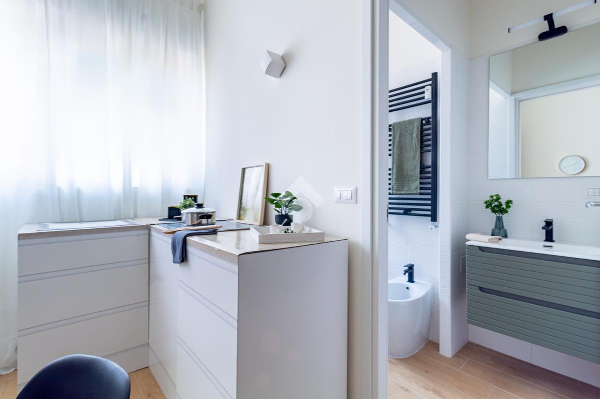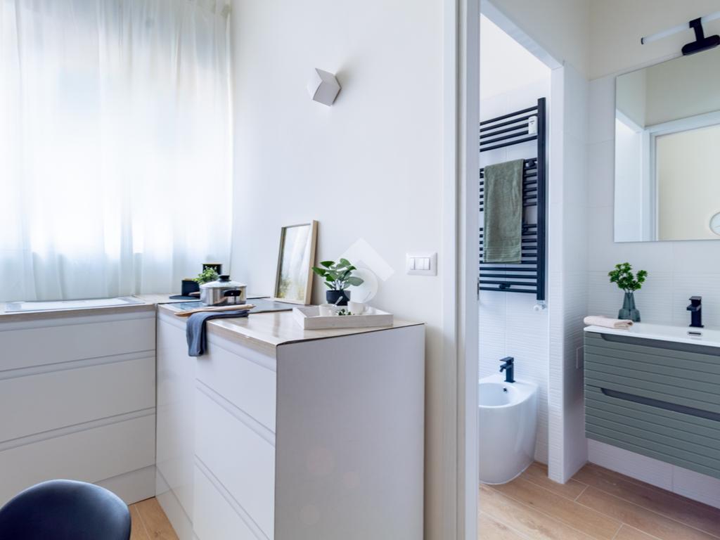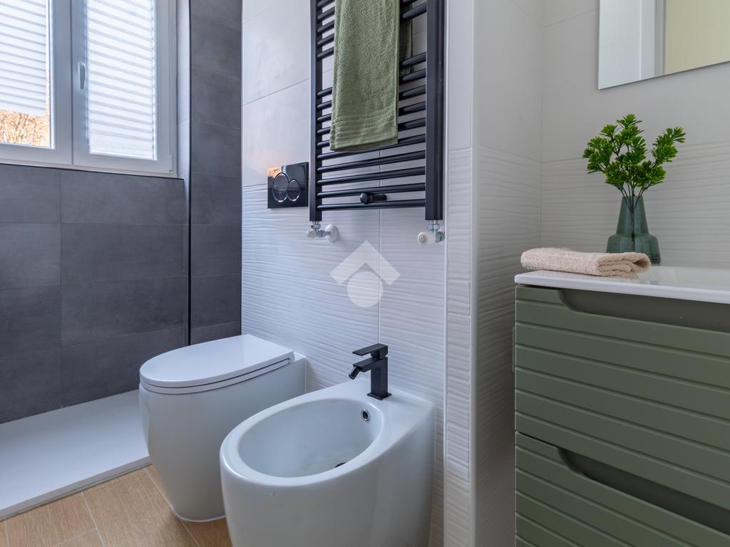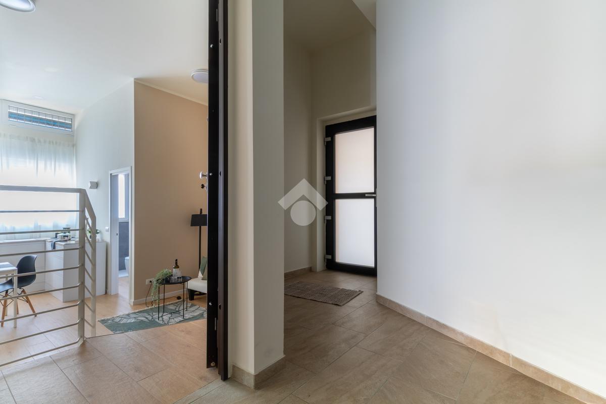 Al suo interno si presenta ristrutturato con infissi triplo vetro pvc, pavimentazione di gres porcellanato, riscaldamento centralizzato a radiatori, aria condizionata, tapparelle elettriche e zanzariere.