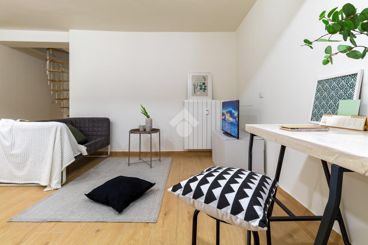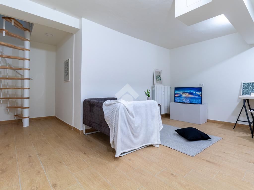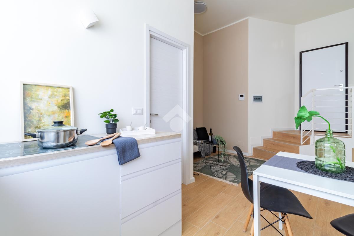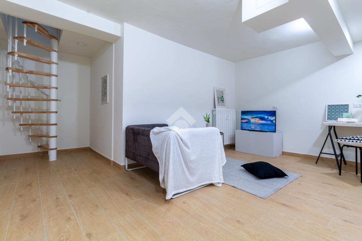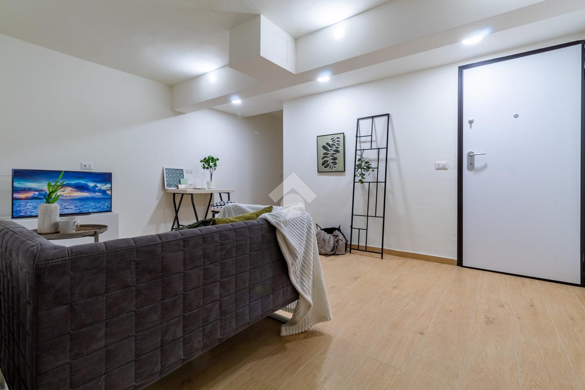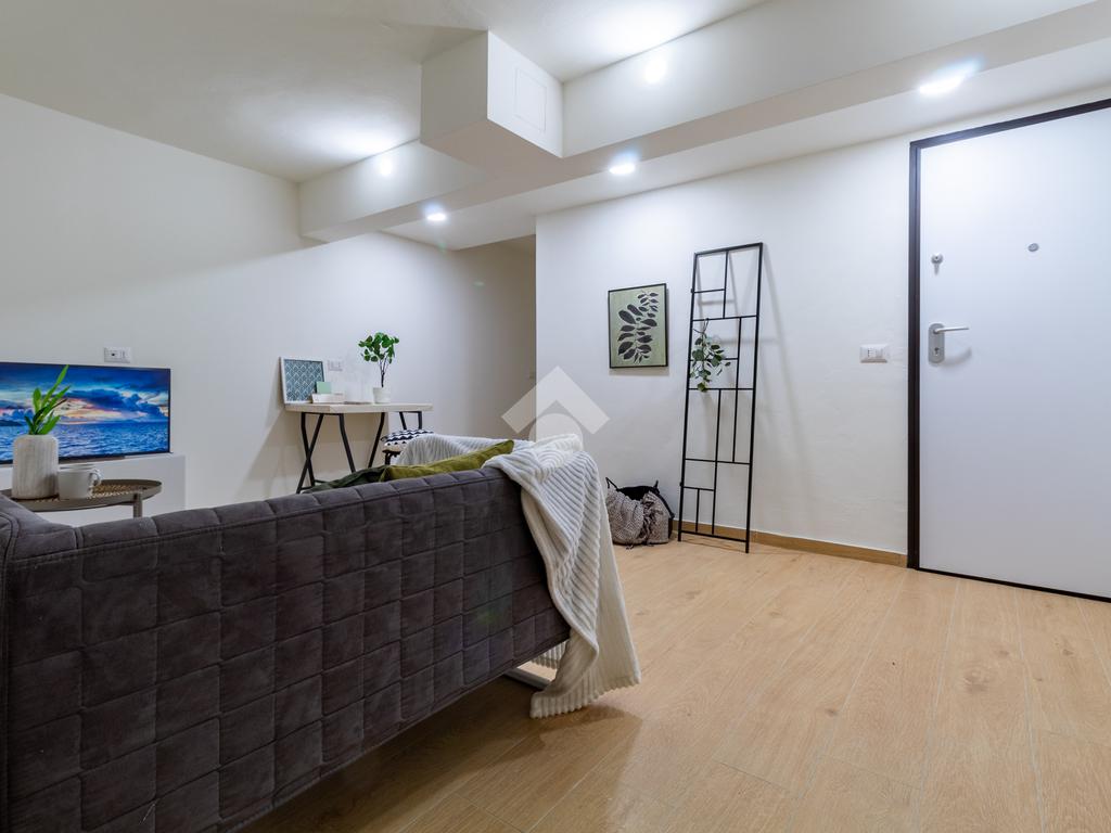 L'appartamento ha un ingresso sul soggiorno con cucina a vista ,camera da letto matrimoniale finestrata, bagno con doccia finestrato. Tramite una scala a chiocciola interna si accede all'ampia taverna.