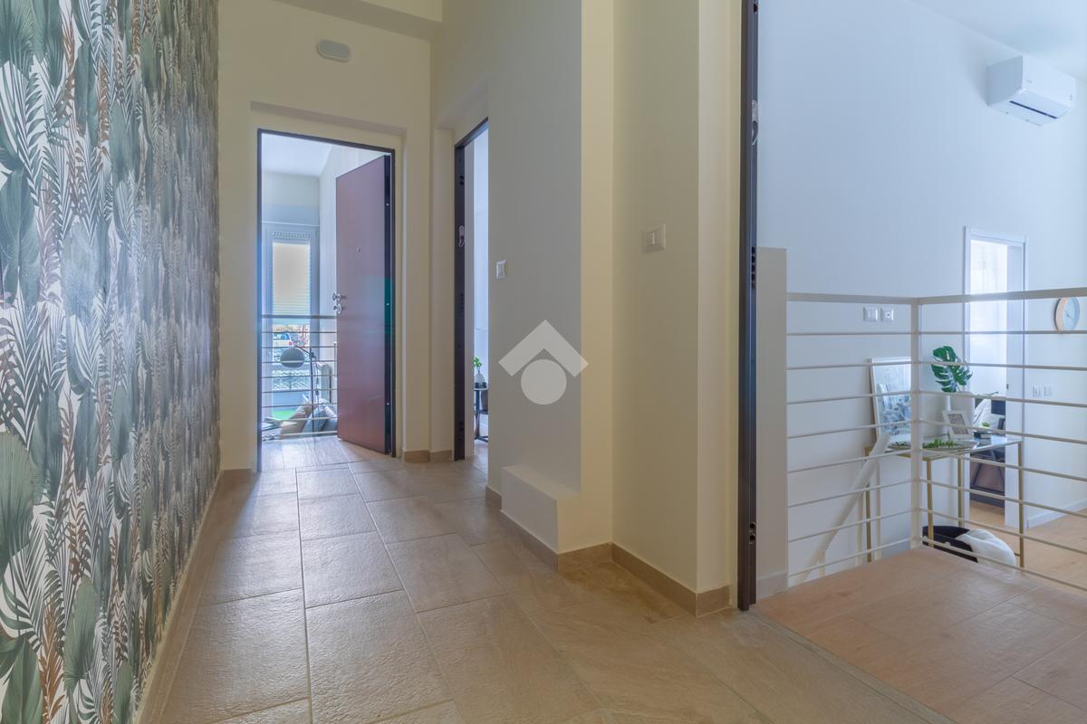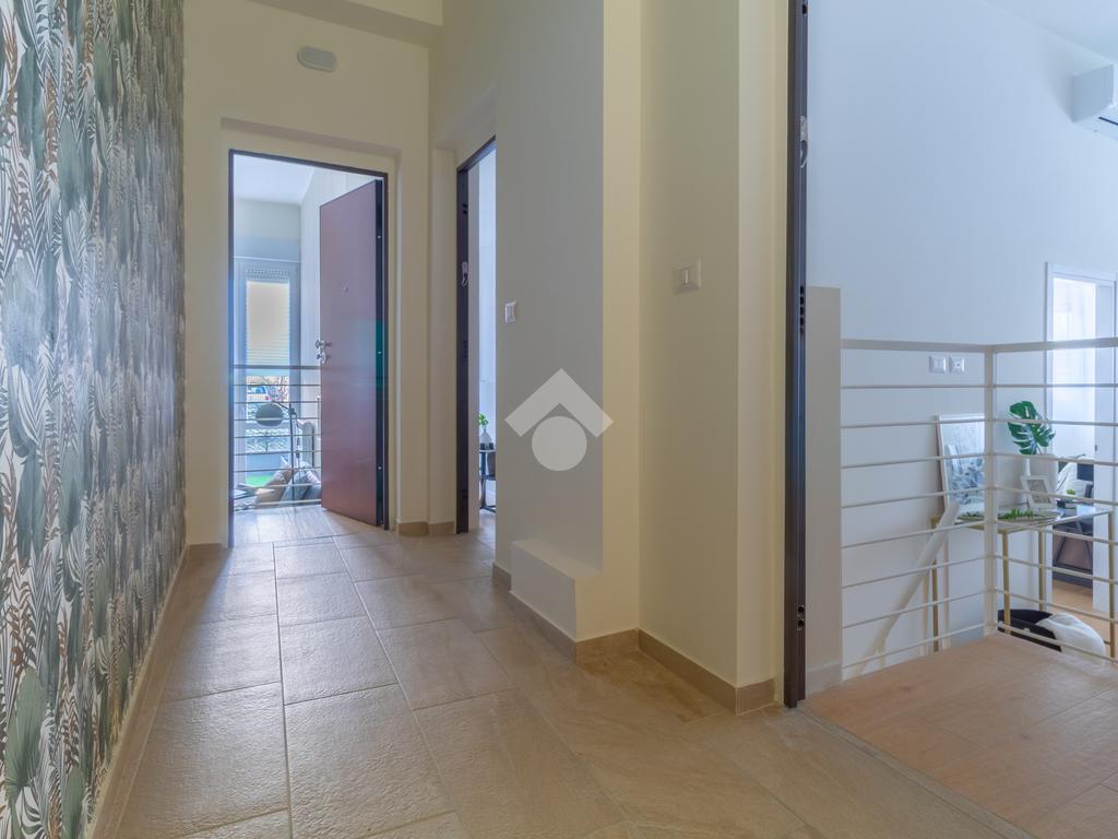 Al suo interno si presenta ristrutturato con infissi triplo vetro pvc, pavimentazione di gres porcellanato, riscaldamento centralizzato a radiatori, aria condizionata, tapparelle elettriche e zanzariere.
