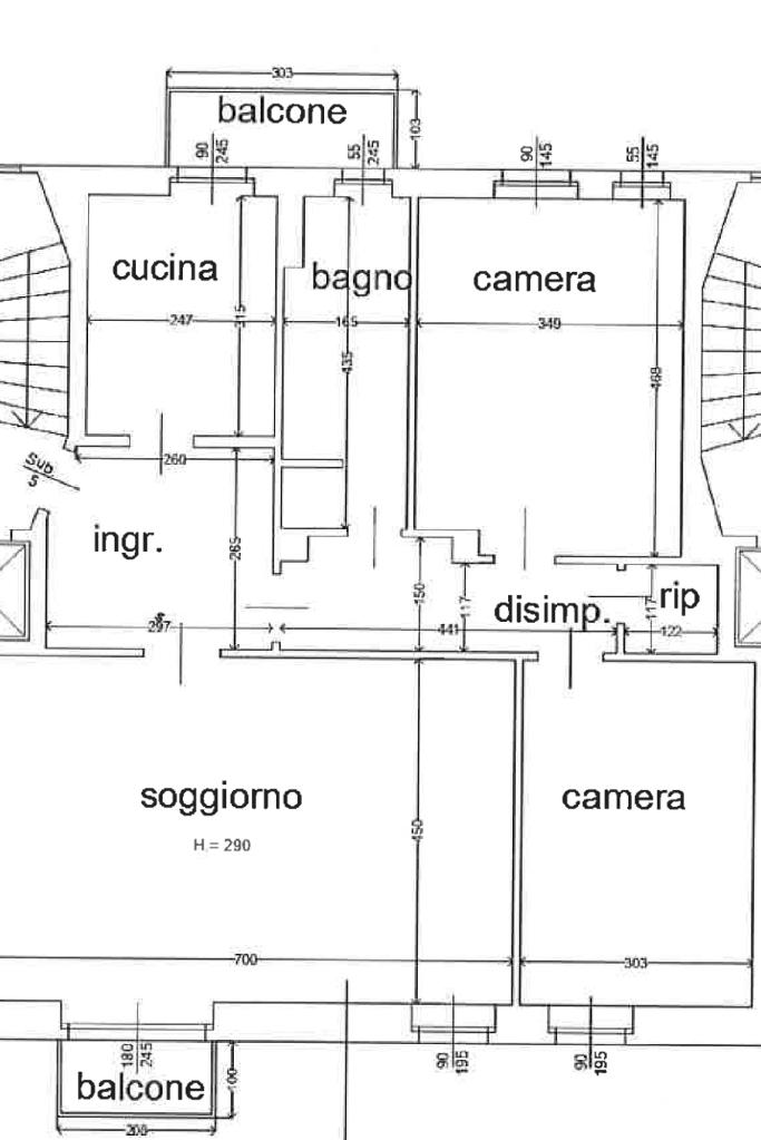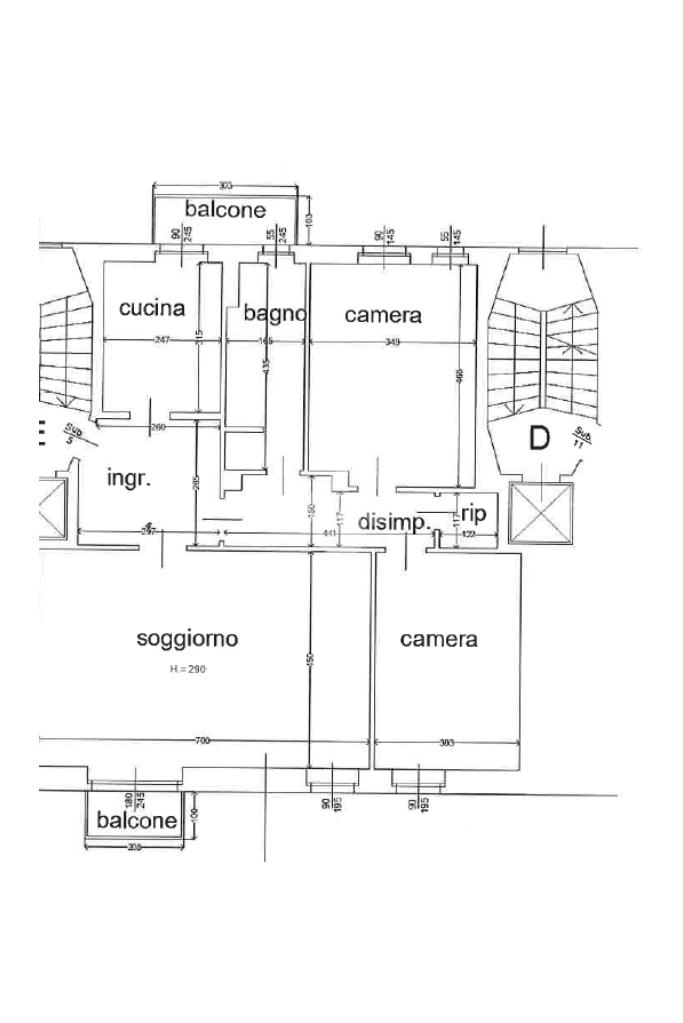 L'immobile è composto da ingresso, ampio soggiorno, cucina abitabile, due camere da letto, bagno finestrato, ripostiglio, due balconi e cantina di pertinenza.